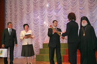 В завершение работы форума председатель Госдумы края Дмитрий Еделев и председатель Учебного комитета Русской Православной Церкви Архиепископ Верейский Евгений вручили победителям окружного этапа Всероссийского конкурса "За нравственный подвиг учителя" дипломы и призы.